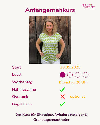 Ich bin Claudia Witticke – leidenschaftliche Näherin, dreifache Bestsellerautorin und Kursleiterin aus ganzem Herzen. Mit über 40.000 begeisterten Kursteilnehmerinnen habe ich es mir zur Aufgabe gemacht, Frauen zu unterstützen, ihre Nähprojekte mit Freude und Selbstvertrauen umzusetzen.